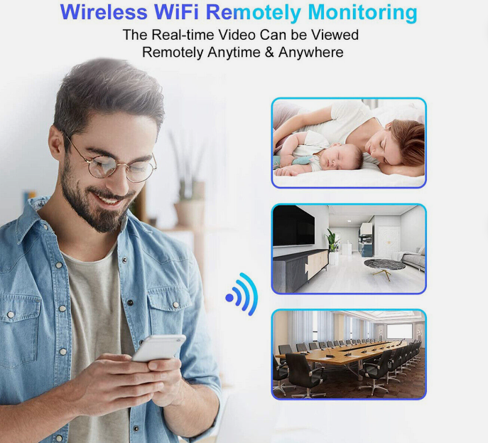 alarm recording, Bracket, Built-in Microphone, loop recording, Microprocessor Technology, Mini Surveillance Camera, motion detection, Multi-user viewing, remote viewing, Wi-Fi