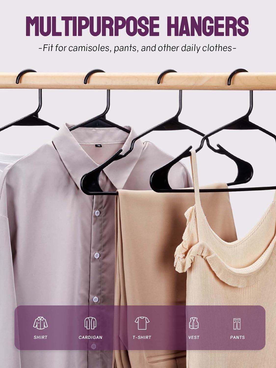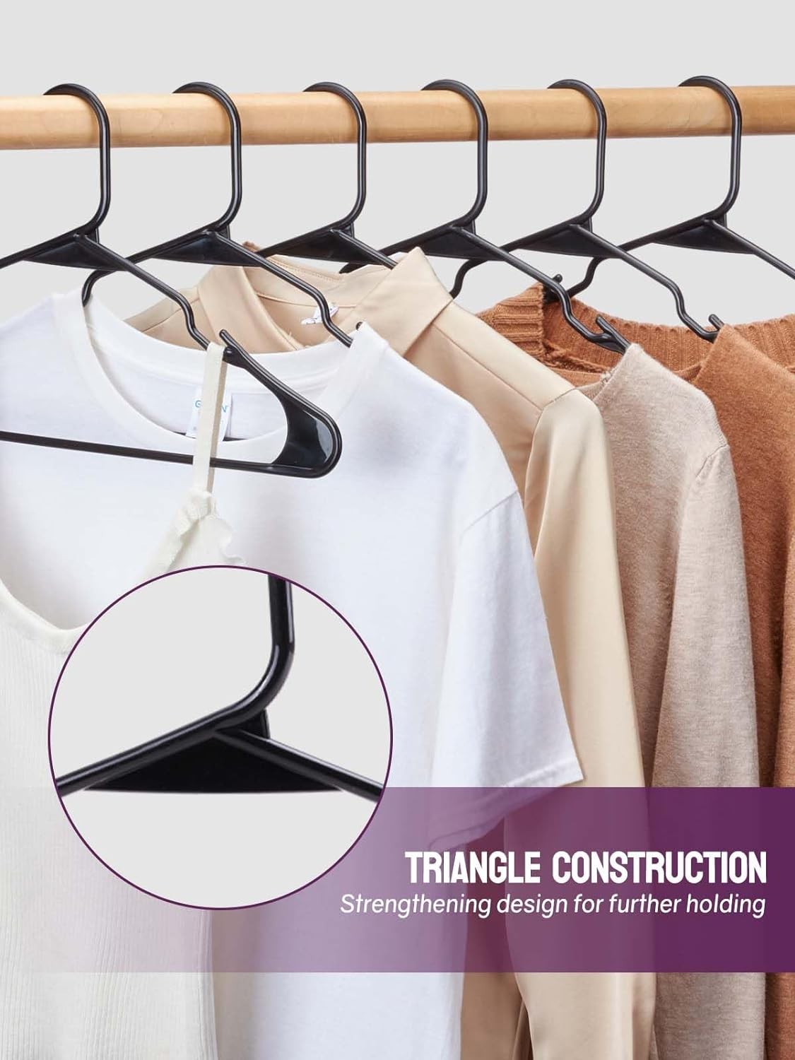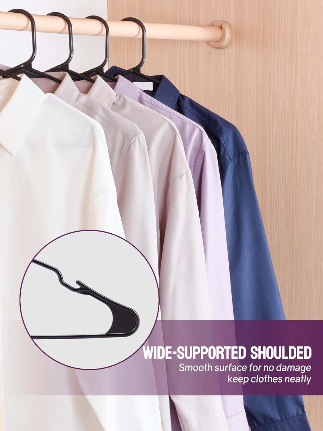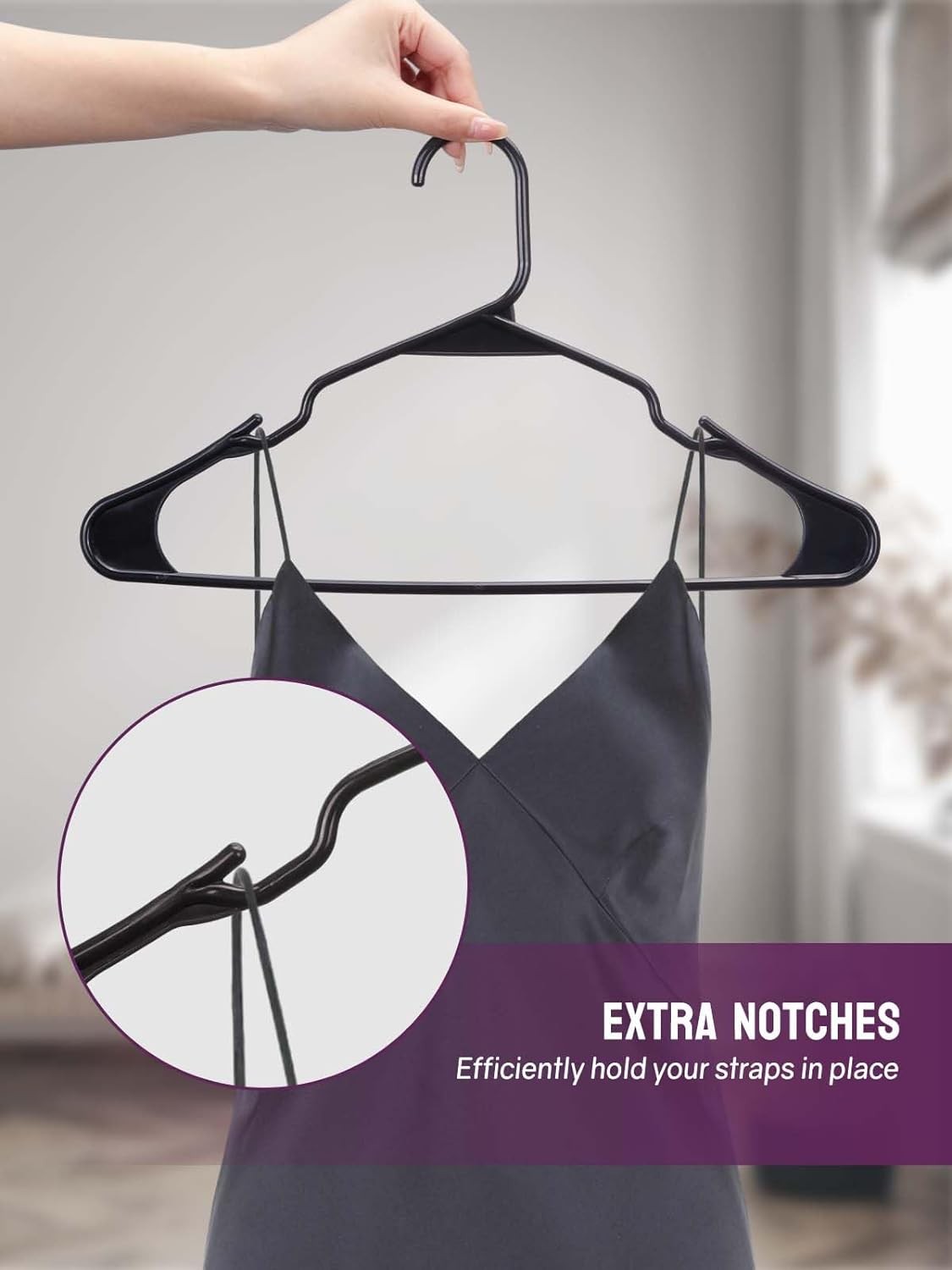 50 Pack Black Plastic Hangers Bulk | 50 100 Pack Available | Clothes Hangers Plastic | Black Hangers Plastic | Lightweight Plastic Hanger as Closet Hangers and Clothing Hangers - Hangers 50 Pack