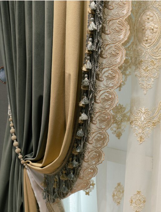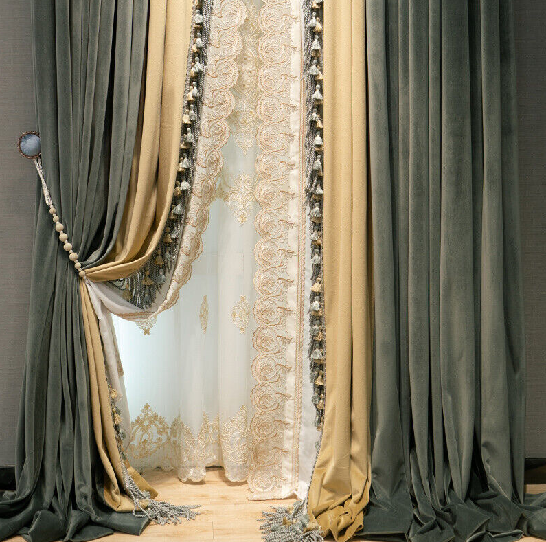 American Dark green luxury velvet thick cloth blackout curtain tulle drape C1408