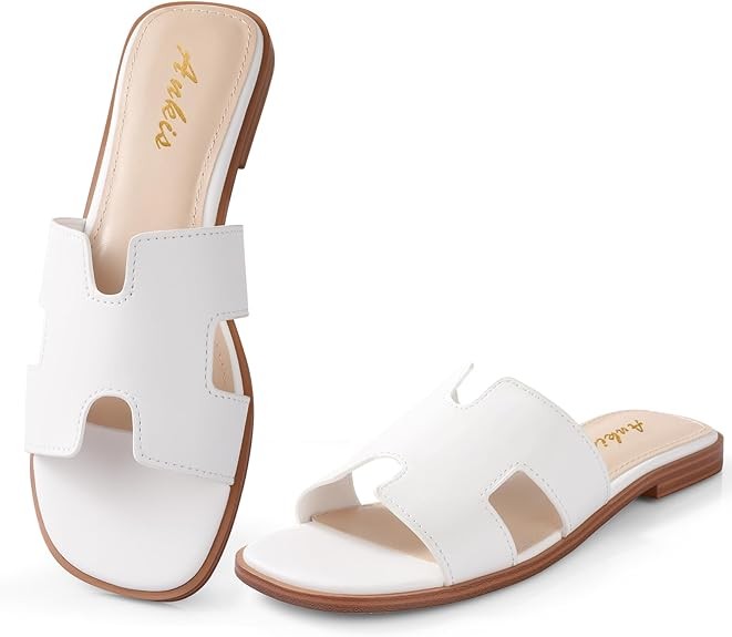 Ankis Black Brown White Biege Gold Women's Flat Sandals Comfortable Women's Slide Sandals Fashion Flat Sandals for Women Summer