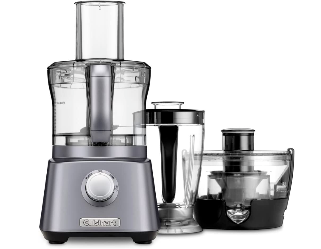 Now home chefs can save time and counter space with the all-in-one versatility of Cuisinart Kitchen Central. Equipped with 3 attachments, this innovative multipurpose kitchen essential easily and seamlessly converts from an 8-cup food processor to a 40-oz. blender to a powerful juice extractor. Prep, blend, and juice to perfection with a simple turn of the dial. The 500-watt motor ensures high-performance and plenty of power for whipping up a wide variety of delicious dishes, desserts, and drinks