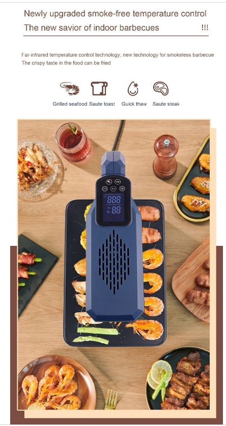 Feature: 1.Heat pipe heating Control the temperature of grease, reduce oil fume, heat light far infrared heating, and heat up faster. 2.Surround heating The chassis is heated around, and the upper and lower exhausts are evenly exhausted for heat dissipation, which has a long service life and a longer use time. 3.LCD liquid crystal screen Control the temperature by yourself, easily realize the freedom of barbecue, easy to operate, and control the deliciousness by yourself 4.Smokeless BBQ Don't worry about oil fumes, the best choice for family gatherings, colleagues' dinners, one person's food. Specification: Voltage: 110VRated power: 850W Touch screen mode: LCD touch screen Product color: Blue Product size: 37 x 22 x 27cm = 14.56 x 8.66 x 10.62 inch Package include: 1 x Electric Infrared Grill Note: Due to the different monitor and light effect, the actual color of the item might be slightly different from the color showed on the pictures. Thank you! Please allow 1-2cm measuring deviation due to manual measurement. |