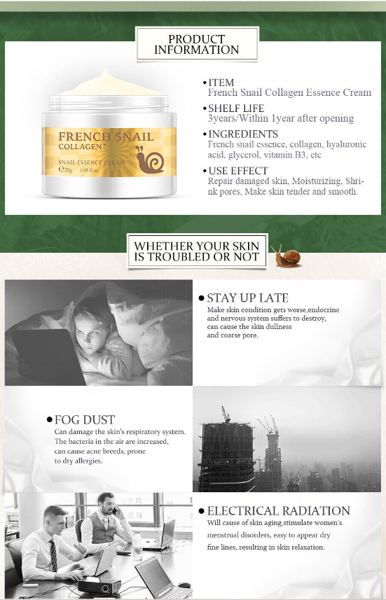 French Snail Face Cream Hyaluronic Acid Anti Wrinkle Anti Aging Collagen Cream==
