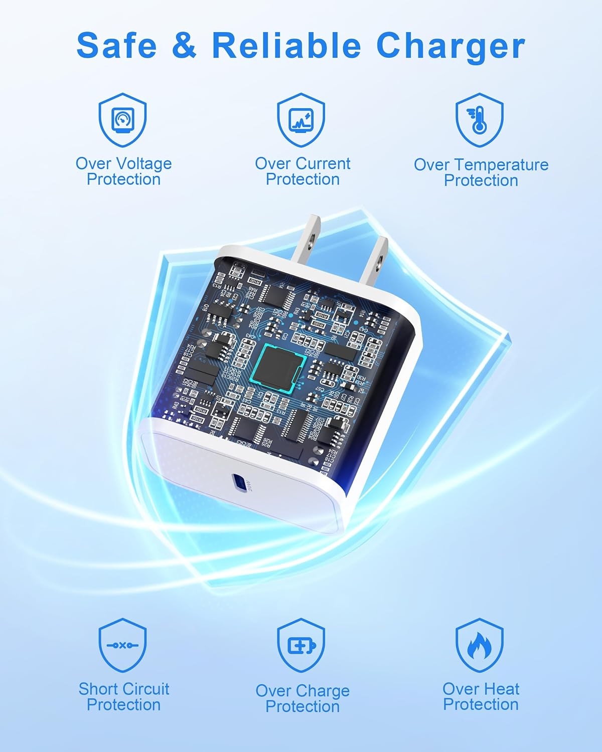 【Universal Compatibility】 20W USB C Fast Charger Compatible with most USB-C devices, including for iPhone 15/15 Plus/Pro Max, iPad Pro 12.9 inch 6th/5th/4th/3th (2022/2021/2020/2018), iPad Pro 11 inch 4th/3th/2th/1th (2022/2021/2020/2018), iPad Air 5th (2022), iPad Air 4th (2020), iPad Mini 6th Gen (2021), iPad 10th Generation 10.9 inch (2022); Also compatible with Google Pixel 7/6/5/4/3/2/XL, and more USB C android phones.