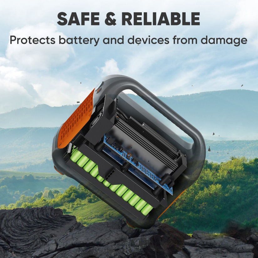 • Safe & Reliable for Outdoor Camping: Features industry-leading cylindrical batteries (popular with manufacturers of Electric Vehicles) that meet UL safety standards. Certified with Impact-Resistance Class 9, passing the UL drop test (withstanding 3 drops from 0.9m height on any surface). The pure sine wave inverter delivers constant voltage that protects equipment from damage.