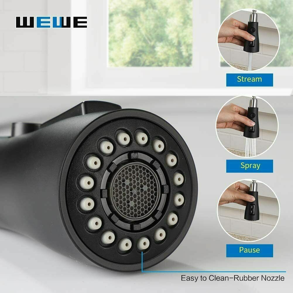 Kitchen Sink Faucet Pull Down Single Handle Swivel Sprayer Mixer Tap W/Plate
