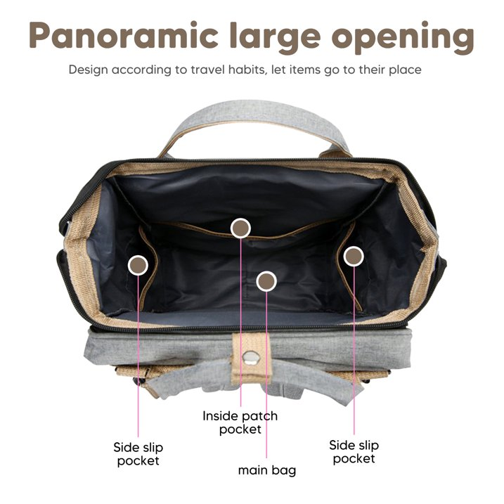 【Diaper Bag With Changing Station 】Our diaper bag features an expandable changing station, offering a safe and hygienic space for your baby. The soft pad keeps your baby comfortable and peaceful during on-the-go diaper changes, while the spacious area prevents rolling over. Easily assemble and disassemble with just two foldable rods.