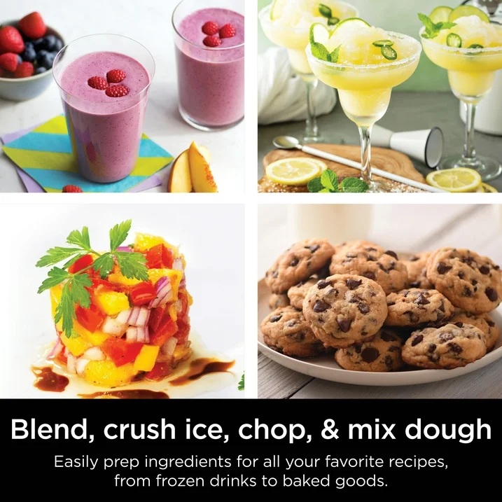 The Ninja Kitchen System provides professional performance with a 72 oz.* blender pitcher, an 8-cup food processor, and 16 oz. Nutri Ninja Cup. This professional kitchen system comes packed with 1200 watts of power to handle all of your drink and meal-making needs. The XL oz. blender pitcher features Total Crushing technology to blast through ice and frozen fruit making it easy to create creamy frozen drinks and smoothies for the entire family. The 16 oz. Nutri Ninja cup is excellent for creating personalized, nutritious drinks to take on the go. The 8-cup food processor bowl comes equipped with a chopping blade for perfect, even results and a dough blade that mixes up to two lbs. of dough in 30 seconds. All parts are BPA free and dishwasher safe. *64 oz. Max Liquid Capacity