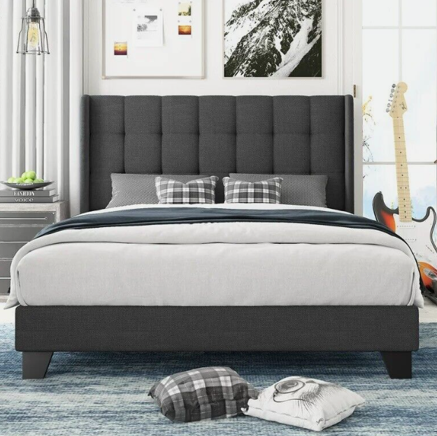 Wingback Headboard: This queen-size platform with headboard has a linen-inspired fabric finish with buttonless square tufting for a classy look.