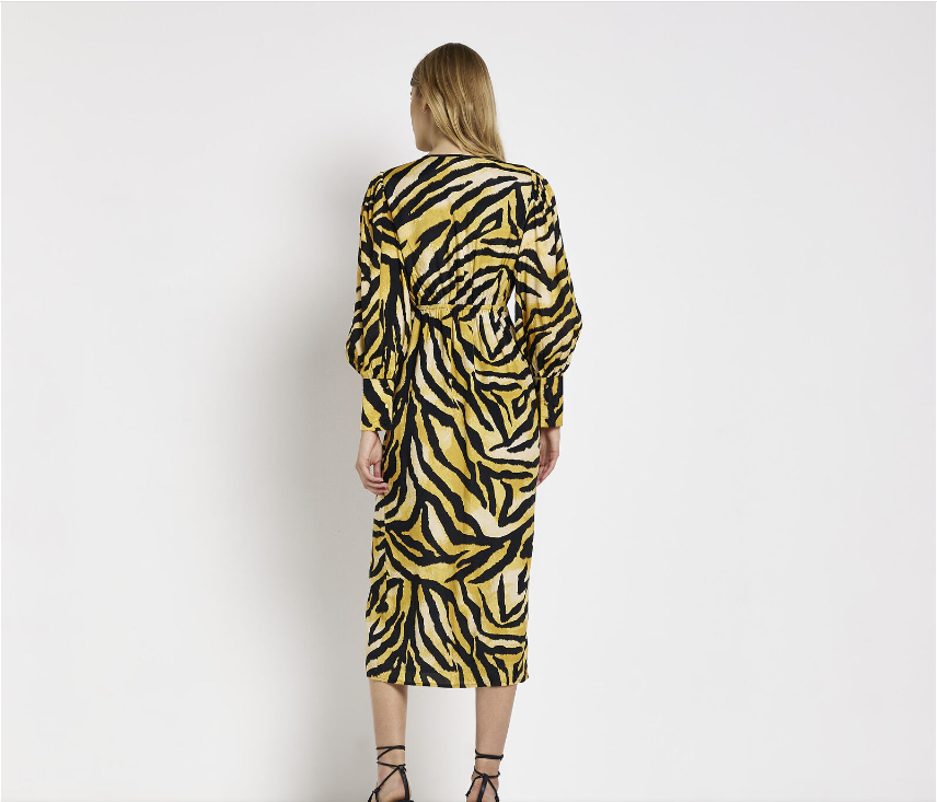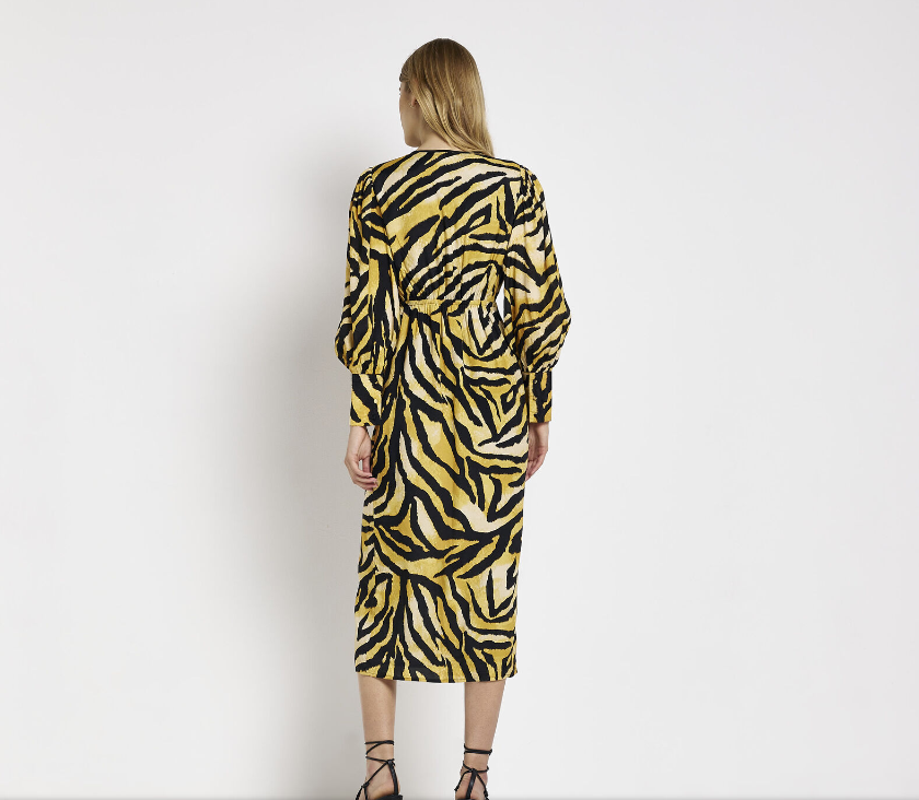 River Island Womens Midi Dress Brown Satin Animal Print Stylish