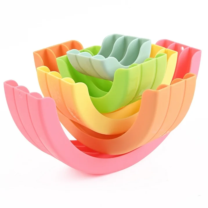 • Includes 5 nesting and stacking rainbow arches in different colors and sizes